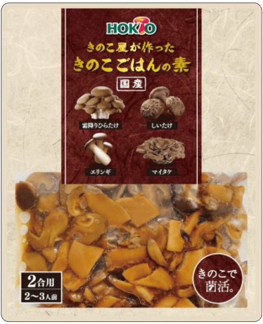 ■商品特徴 国産4種のきのこを贅沢に使った、風味豊かな炊き込みご飯の素です。