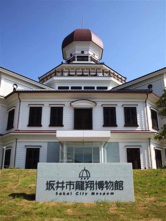 明治時代の「龍翔小学校」のこうもり傘屋根と五層八角の外観をモデルに再現された坂井市龍翔博物館