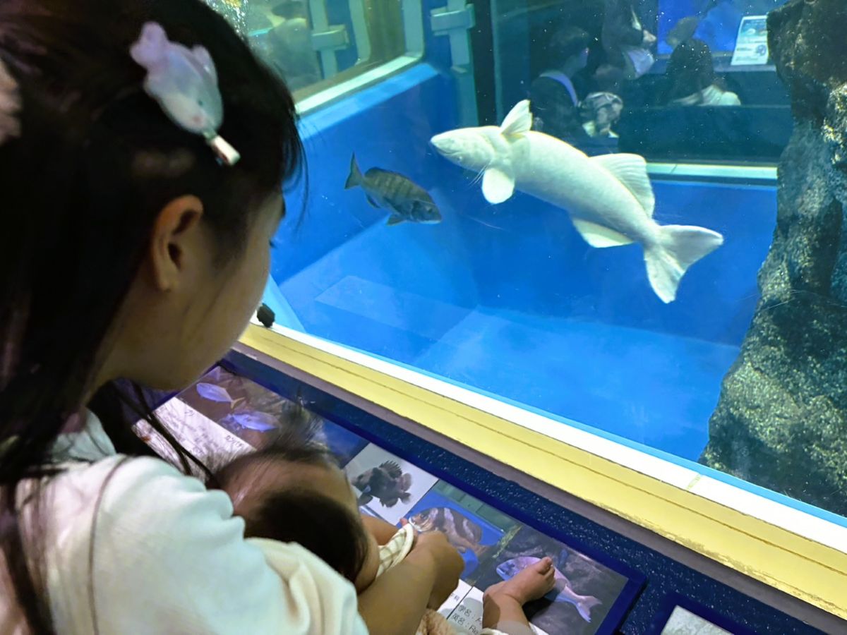 おさかなショーではイシダイの旗引きやクイズ等、華麗なショーを楽しめました!思わず応援したくなるショーに、みんな釘付けでした。