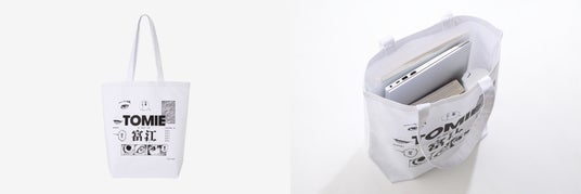 丈夫なコットンキャンバス生地を使用したトートバッグは、『もろみ』のハイライトシーンをコラージュで表現。A4ファイルやノートブックが楽に収納できる大きさなので、デイリーに使いやすいバッグです。