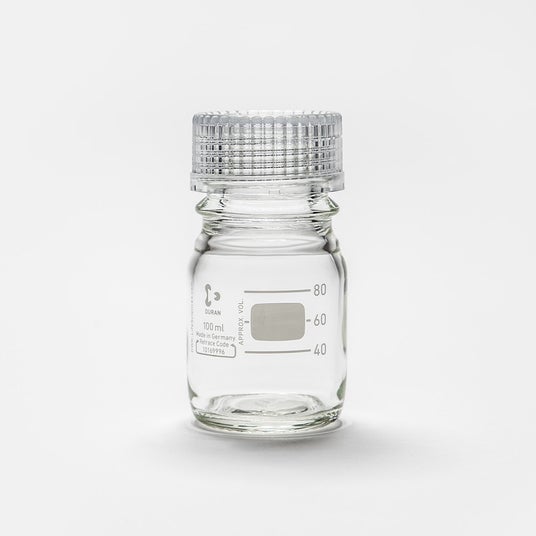 ねじ口瓶丸型 透明キャップ付 50ml /¥2,750(税込)頭でっかちなフォルムがたまらない。何も入れずとも身近に転がしておきたい愛らしさ。