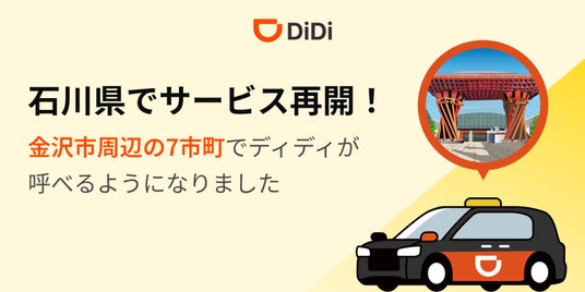 DiDiモビリティジャパン株式会社(東京都港区、代表取締役社長:和久山大輔)は、2025年11月12日(水)より、コロナ禍の影響によりサービスを中止していた石川県金沢市など7市町で、タクシー配車アプリ「DiDi(以下、「ディディ」)」のサービス提供を再開します。これに伴い、ディディの日本国内におけるサービス提供エリアは28都道府県となります。