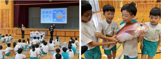 一般社団法人とやまミライラボは、回転寿司チェーン「くら寿司」を運営するくら寿司株式会社と共同で、子どもたちにとって身近な回転寿司を題材に、海洋環境や食品ロス、低利用魚の活用について考える「お寿司で学ぶ SDGS」出張授業を、11月7日(金)に小矢部市立石動小学校で開催いたしました。