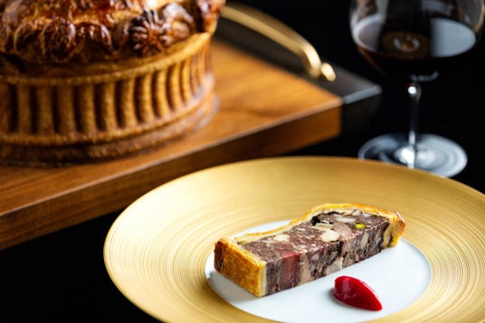毎冬、王侯貴族のための特別料理「王様のジビエ」を提供しています。名称の「王(ロワ)」は、希少な食材と手間暇に由来します。本プログラムでは、鹿や猪、山鳩など数種類のジビエをパイで包んだ「パテ・ド・ロワ」と、穴熊、雷鳥などを使った「ジビエ・ア・ラ・ロワイヤル」をコースに含めて用意。ジビエのフォンと赤ワインをベースに、スパイスやチョコレートを加え、1週間もの時間をかけて作り上げる特製ソースが、ジビエの旨味を一層引き立てます。