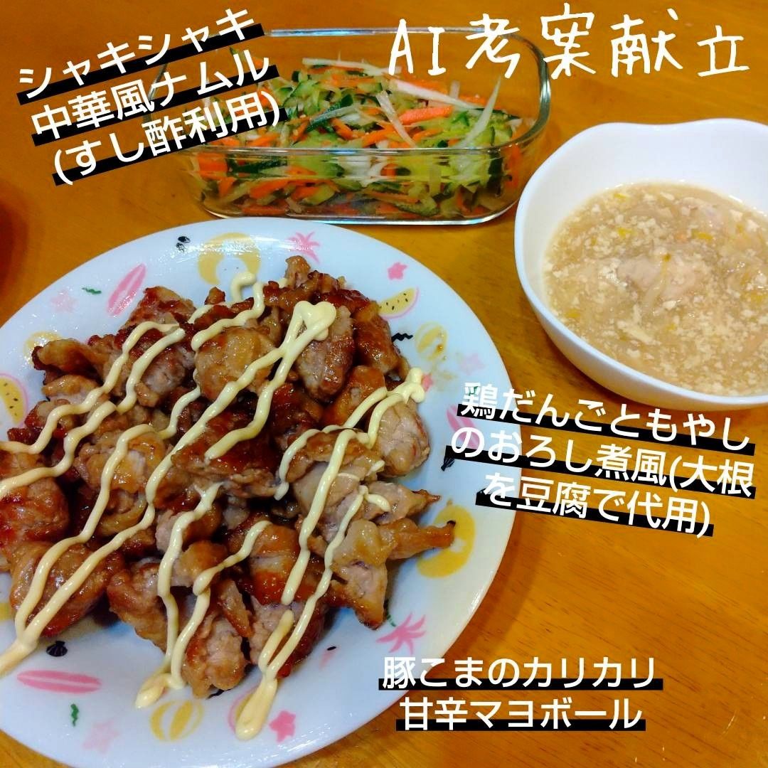 「あと、きゅうりが余ってるから副菜も考えて」とお願いすると、献立全体のバランスを崩さずにきゅうりを使った副菜を提案してくれます。