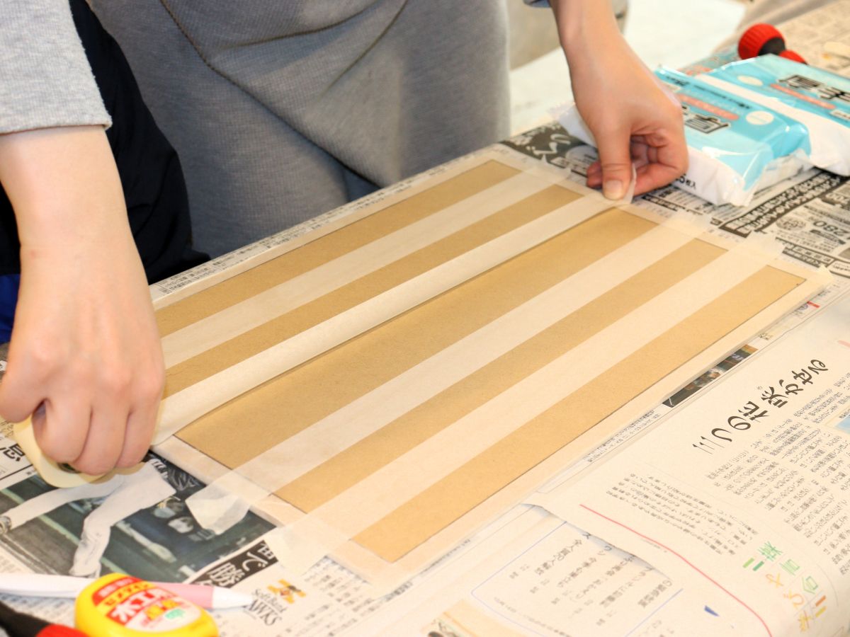 ②最初の色を塗らない部分に、マスキングテープを貼ります。