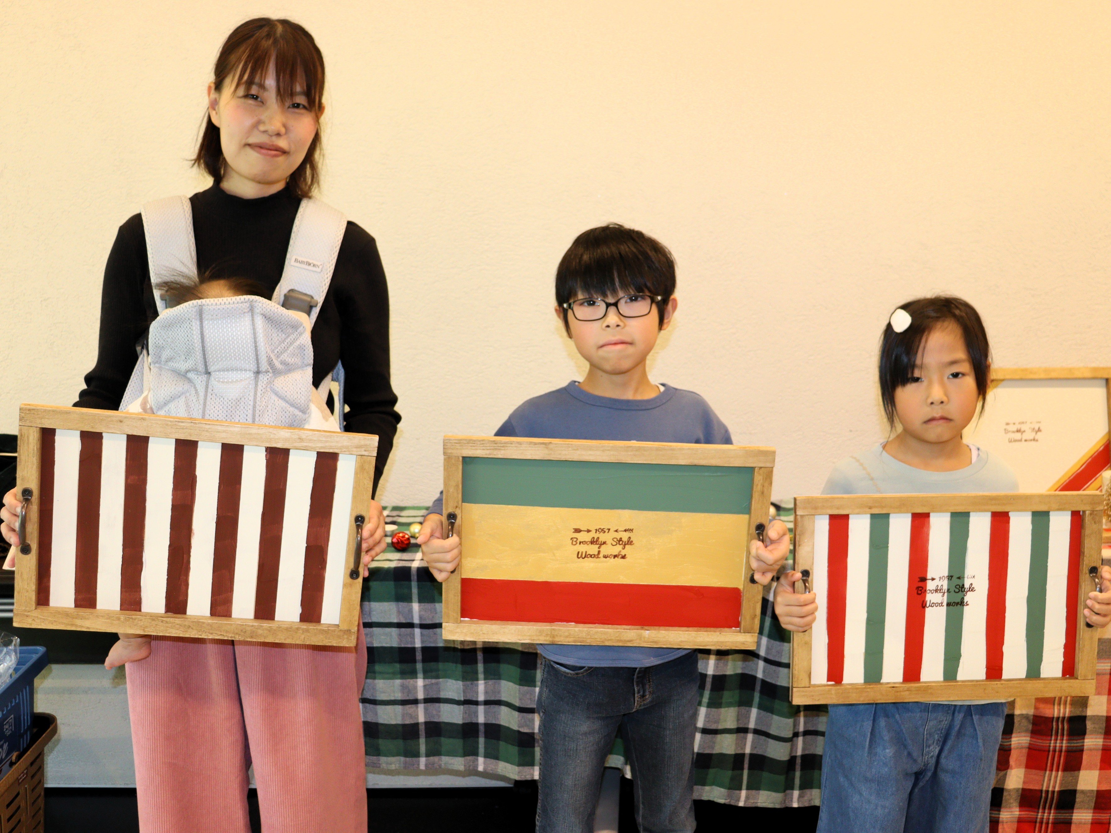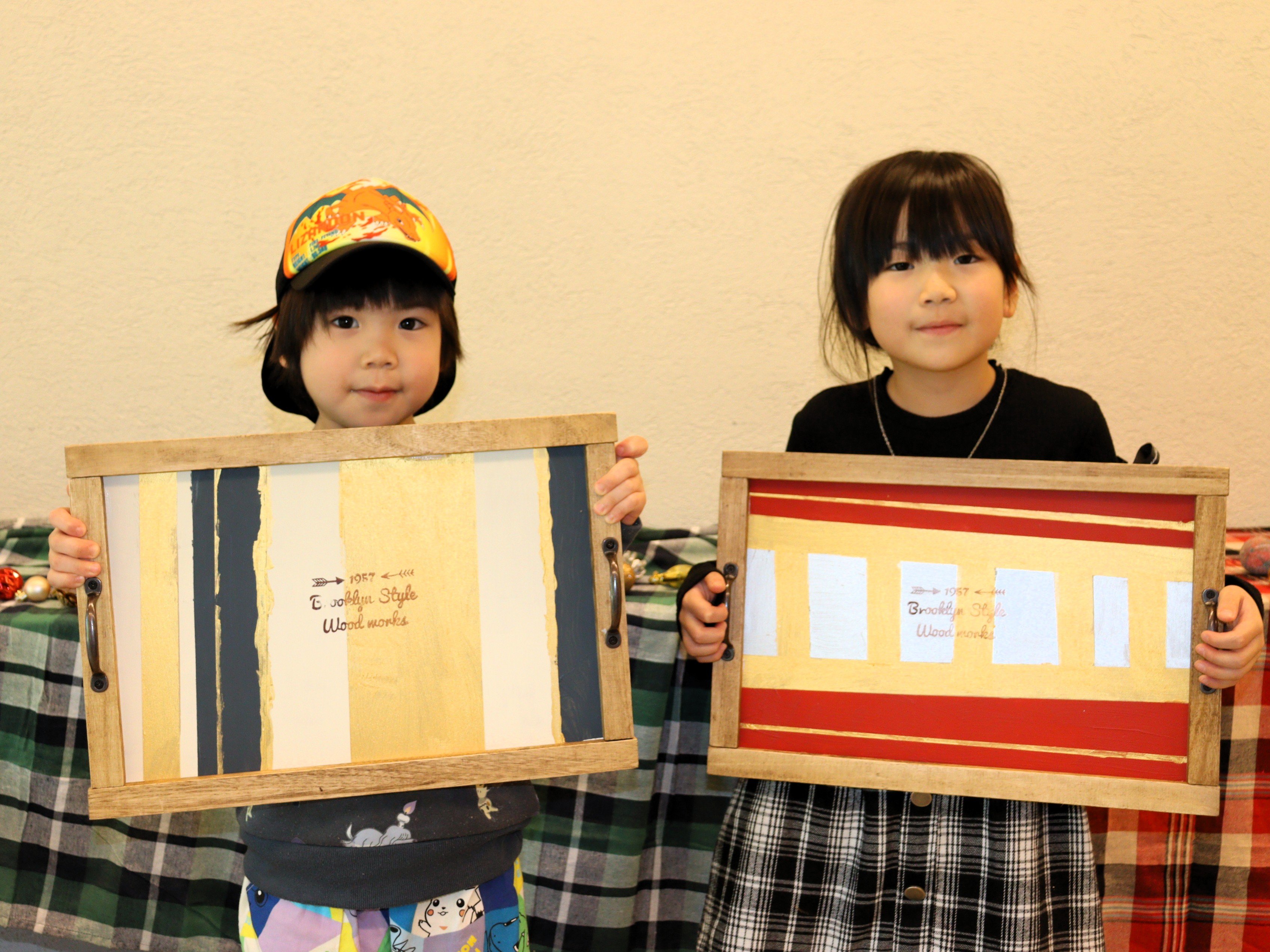 個性が光る素敵なトレーが出来上がりました!コノコトレポーターの皆さんや子どもたちは1時間半ほどで作り上げました。