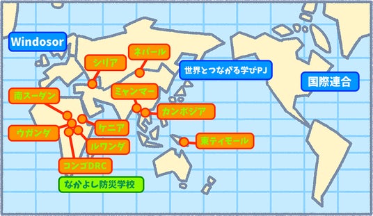 なかよし学園の活動国。紛争地や貧困地域を含む世界各国で活動を行っている。