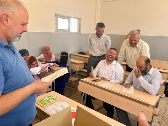 中学生と教員が作成。内戦終結直後のシリアの授業で活用され、現地の子どもたちから感謝のメッセージが“里帰り”。「平和を楽しく学ぶ」ための日本発の教材が、復興期の教室を支えました。