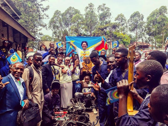 やがて現場は日本から世界へ。掲げた合言葉は「チョーク1本で世界を平和に」。アフリカ・中東・アジアの紛争地・被災地に入り、教育支援/少年兵の社会復帰支援/防災・公衆衛生・食糧支援を十数年にわたり継続してきました。同時に、日本の教室で生まれる探究や作品を海外で“実装”し、現地の反応を再び教室へ戻す往還モデル「CoRe Loop(つくる→届ける→共創→還る→拡張)」を確立。子どもたちのカルタ、防災ブック、食育キット、文化教材などを50校超・年間1万人規模で世界につなげ、「願う平和」を「行動する平和」へ変換してきました。