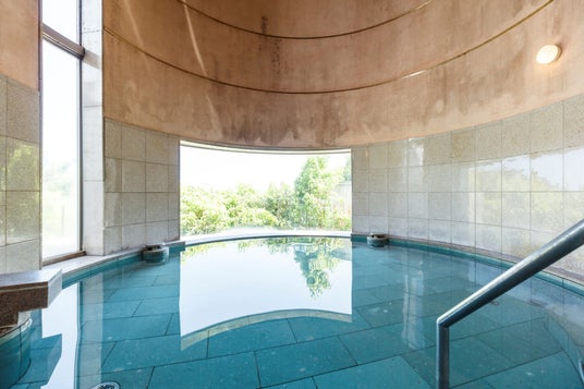 四角形の「箱湯」と円形の「筒湯」は月替わりで男女を入れ替え。湯上がりには、開放感あふれる広々とした休憩スペースでくつろぎの時間をお楽しみください。