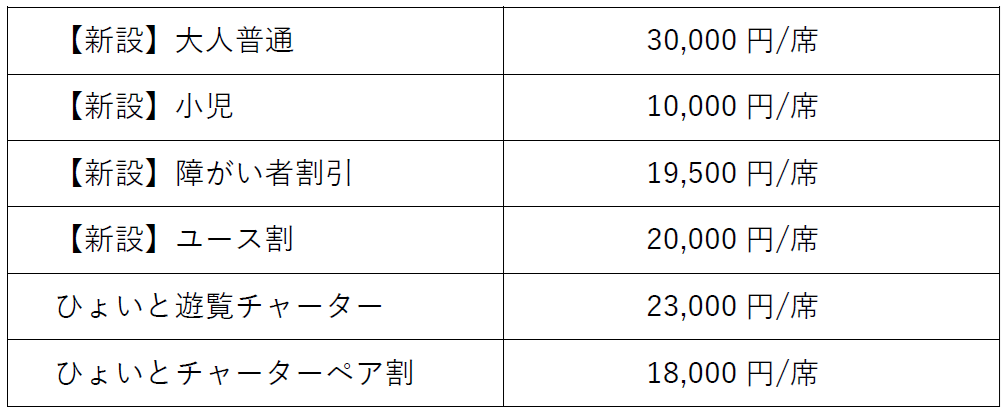 備 考:※「ひょいと遊覧チャーター」「ひょいとチャーターペア割」運賃の購入期限はご出発の