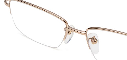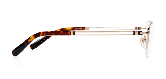 フロントとテンプルに異なるメッキカラーを採用した、洗練された雰囲気を纏うメタルフレーム。フロントデザインは、リムの角を取り滑らかにする台形リムを採用しており、横から見た時の雰囲気は柔らかく、正面から見た時は重厚感あるつくりとなっており、正面と横で違った雰囲気を楽しむことができます。