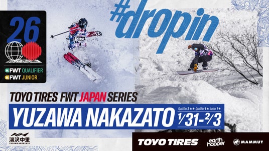 Freeride World Tour (以下FWT)の日本国内の運営を統括するFWT運営事務局(株式会社アースホッパー内、本社:東京都台東区、代表:井上慶)が2026年に開催する、「2026 FWT JAPAN SERIES」のシリーズタイトルパートナーに7年目となる「TOYO TIRES」(TOYO TIRE株式会社、本社:兵庫県伊丹市、社長:清水隆史)が決定いたしました。昨年に続き「アースホッパー」(株式会社アースホッパー、本社:東京都台東区、代表:井上慶)と、今年から「MAMMUT」(マムート・スポーツグループジャパン株式会社、本社:東京都渋谷区、社長:福田太一)の2社が「メインパートナー」を務めます。「MAMMUT」は、昨年に引き続き「オフィシャルセーフティーパートナー」も担っていただくこととなりました。3社様のご協力のもと2026 TOYO TIRES FWT JAPAN SERIES を運営してまいります。