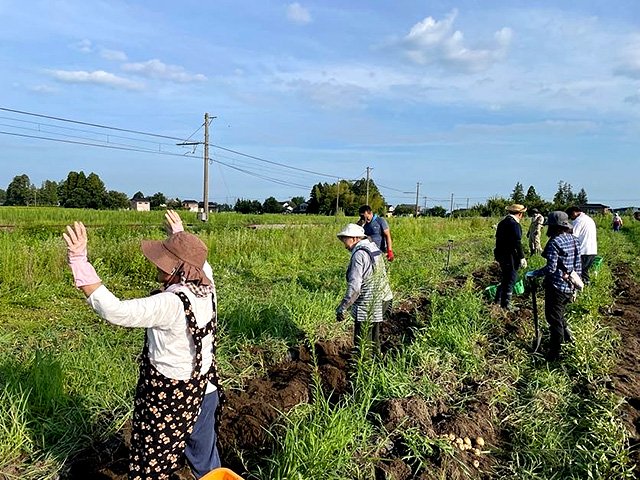 同協議会は国の補助を受け、2023年からコミュニティーガーデンを始めた。約1ヘクタールの耕作放棄地を使い、サツマイモやジャガイモなどを栽培。地元住民だけではなく、地域外からの参加も多いという。8月下旬に現地を訪ねると、参加者が和気あいあいと畑作業を行い、近くを通る富山地方鉄道立山線の列車が近づくと、全員で手を振っていたのが印象的だった。