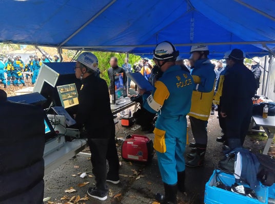 大規模災害発生時を想定し、瓦礫除去などロボットによる救助支援能力を確認
