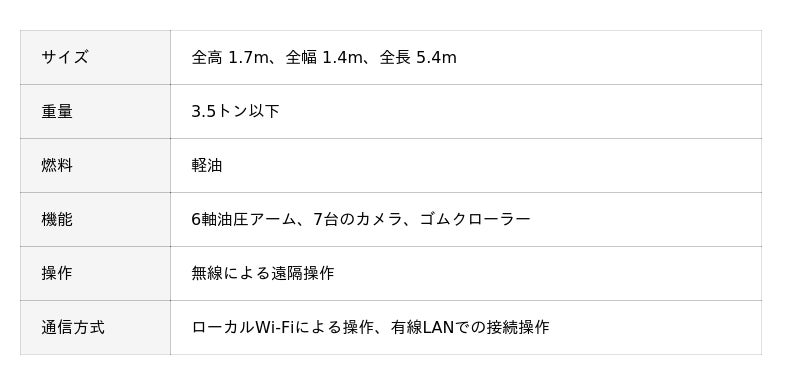 倒壊した建物の中や、有毒ガスが充満した危険な場所でも、離れた安全な場所から操作