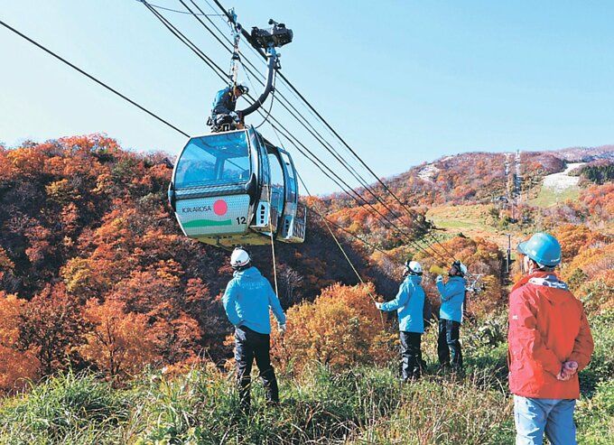 来月19日に今シーズンの営業を開始するイオックス・アローザスキー場(富山県南砺市才川七)で20日、ゴンドラから乗客を救助する訓練が行われた。