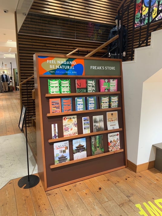 長野市との連携施策では、広報広聴課や観光振興課と協力し、FREAK’S STORE長野の店内に長野市の観光パンフレットを展開できる特設棚を設置。「長野コンテンツ×ファッション」をキーワードに長野市の魅力を伝え続けています。