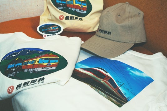 長野電鉄を代表する2000系と1000系を、信州の山々を背景にイラストに落とし込んだデザインと、小田急ロマンスカーとして活躍した車両を譲り受け、長野電鉄の特急「ゆけむり」として運行している1000系をプリントしたデザインのアイテム展開。世代を超えて愛されている名車の魅力を表現しています。Tシャツはキッズの展開も。