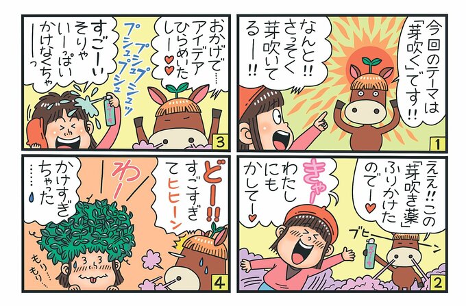森さんの作品では「芽吹き薬」をかけすぎて、頭からたくさん芽が出たというにぎやかなオチで締めた。「ここまで自由に描くことができるのが、漫画の面白さだと思う。遊び心を持たせ、共感も得られる表現があると、よりよい作品になるはず」と話す。