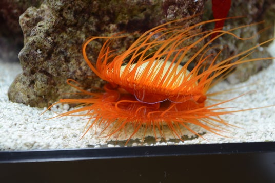 デンキウナギが発生させた電気によってクリスマスツリーに飾られた電球が点灯し、CDプレイヤーから音が出ます。