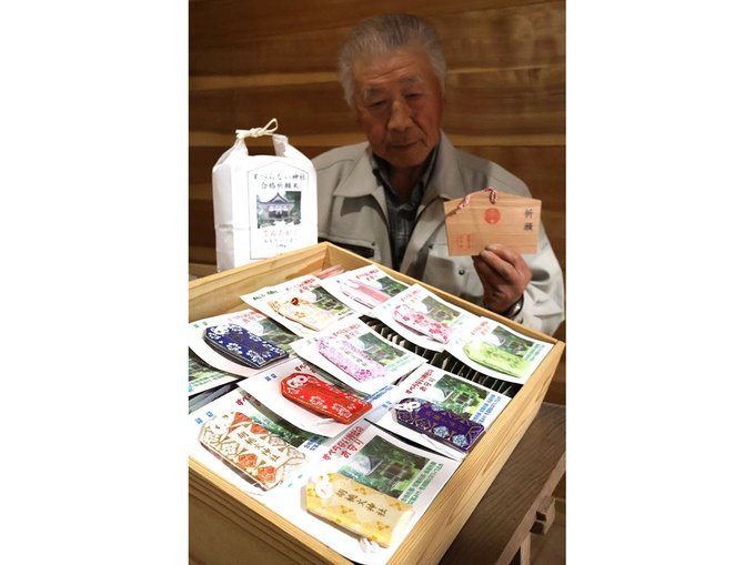 お守りと絵馬は各千円で、お守りは7柄10色の錦袋と赤瑪瑙(めのう)石を付けた2種類を用意した。合格祈願米は2千円。売上は神社の維持管理に充てる。同委員会事務局の森昭市さん(77)は「験担ぎにしてもらい、めでたい結果が出るように願っている」と話した。