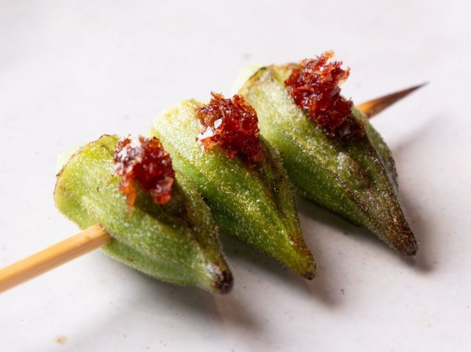 鳥取県の「鹿野地鶏」や長野県の「信州黄金シャモ」といった地鶏を、営業日ごとに丸鶏からさばく。火力の高い高知県の土佐備長炭にこだわり、肉汁を閉じ込めて焼き上げる。焼き鳥はもちろん野菜串も驚くほどジューシー。ぜひ集中して一本ずつ味わいたい。