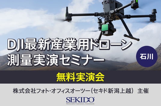 DJI(ディージェイアイ)正規販売代理店としてドローンビジネスの最前線を支える株式会社セキド(本社:東京都港区、代表取締役:大下貴之、以下「セキド」)は、セキド新潟上越(運営:株式会社フォト・オフィスオーツー、新潟県上越市)と共催し、2025年12月5日(金)に石川県金沢市にて、最新の産業用ドローンを活用した空中写真測量・レーザー測量の実演と比較検証を行う「DJI最新産業用ドローン 測量実演セミナー in 石川」を開催します。