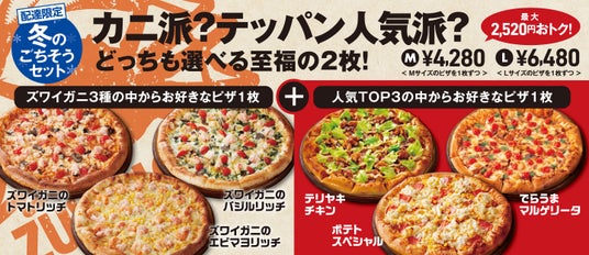 アオキーズ・ピザ(株式会社アオキーズ・コーポレーション 本社/名古屋市)は、冬の味覚・ズワイガニを贅沢に楽しめる『ズワイガニリッチコレクション』に加え、同シリーズと定番人気ピザを組み合わせて楽しめる『冬のごちそうセット』を、2025年12月1日(月)より期間限定で販売いたします。また同日より、フライドチキンとピザがおトクになる「クリスマス早割」キャンペーンも実施いたします。