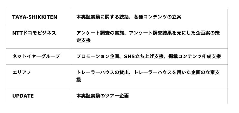 株式会社TAYA-SHIKKITEN(以下TAYA-SHIKKITEN)、NTTドコモビジネス株式会社(旧 NTTコミュニケーションズ株式会社、以下 NTTドコモビジネス)、ネットイヤーグループ株式会社(以下 ネットイヤーグループ)、株式会社エリアノ(以下 エリアノ)、THE UPDATE ORGANIZATION株式会社(以下UPDATE)は、輪島塗のギャラリー、工房などを備えた観光施設の「WAJIMANURI VILLAGE」にて、輪島塗の体験・見学に関する実証実験(以下 本実証実験)を行います。
