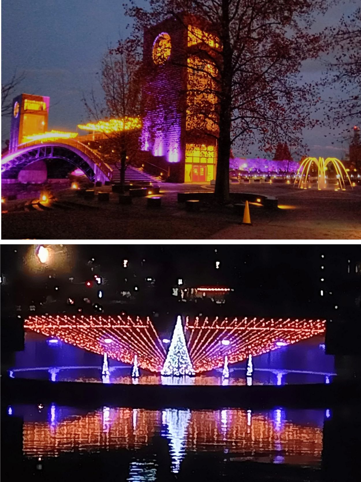 富山駅に行った帰り、環水公園の「スイートイルミネーション」を観てきました。ライトアップされた天門橋や噴水、白く輝くツリーなど幻想的でした😊