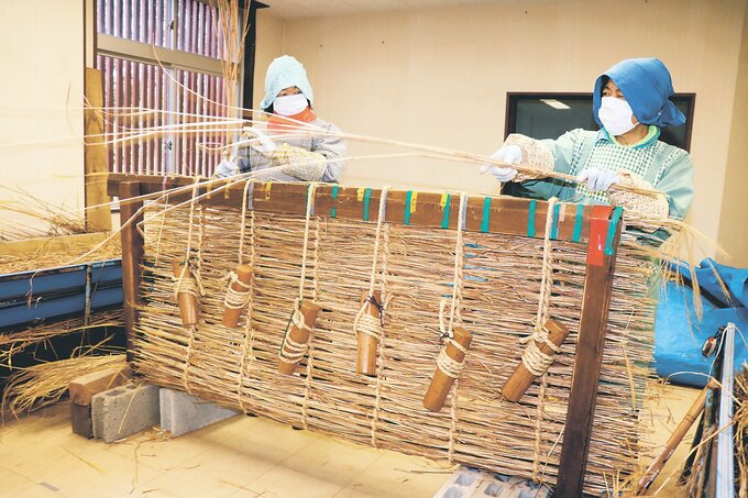 今年は神社や民宿、民家向けに22枚作る。要望を受けて、竹の雪囲いの編み直しにも初めて挑戦する。