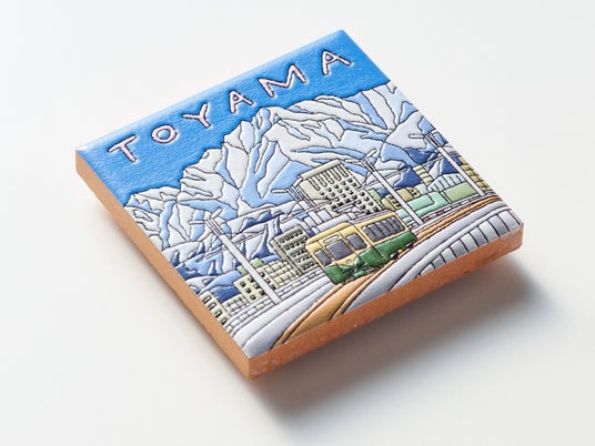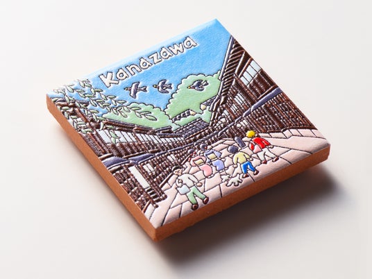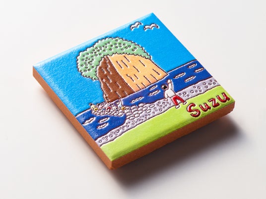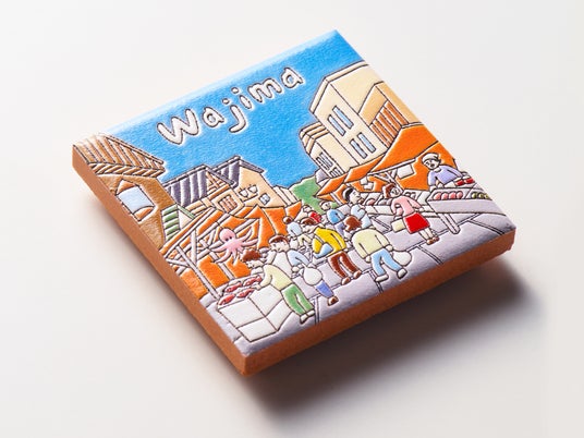 ご当地クリエイターが描いたイラストをもとに、宮城県女川町の「みなとまちセラミカ工房」が15cm角のスペインタイルを制作、そのタイルをスキャンしてPENON独自のプリント技術で立体化するという3段階の工程を経て、スペインタイルの特徴を活かした『旅するマグネット』を仕上げています。