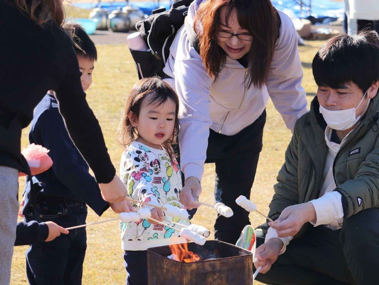 みんなで協力して火おこしをして、舟橋村産のさつまいもや里芋を焼いてみよう。マシュマロ串やウインナー串も販売されます。キッチンカーも出店。たき火でぽかぽか、楽しい時間を過ごそう。