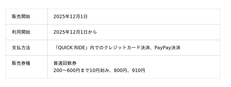 レシップホールディングス株式会社(本社:岐阜県本巣市、代表取締役社長:杉本 眞)の連結子会社レシップ株式会社(本社:岐阜県本巣市、代表取締役社長:北野 元昭)は、加越能バス株式会社(本社:富山県高岡市、代表取締役:松井 康浩)において、スマホ乗車券アプリ「QUICK RIDE」を導入し、2025年12月1日より「定期券」「回数券」の取扱いを開始します。