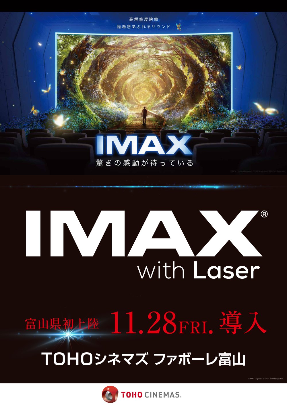 TOHOシネマズ ファボーレ富山は、11月28日より富山県内初となるIMAX®レーザーを導入しました。4Kレーザー投影システムにより、従来より高解像度な映像を楽しむことができます。さらに、最新の12chサウンドシステムを採用。アップグレードされたサウンドシステムが、迫真の音響空間をつくり出します