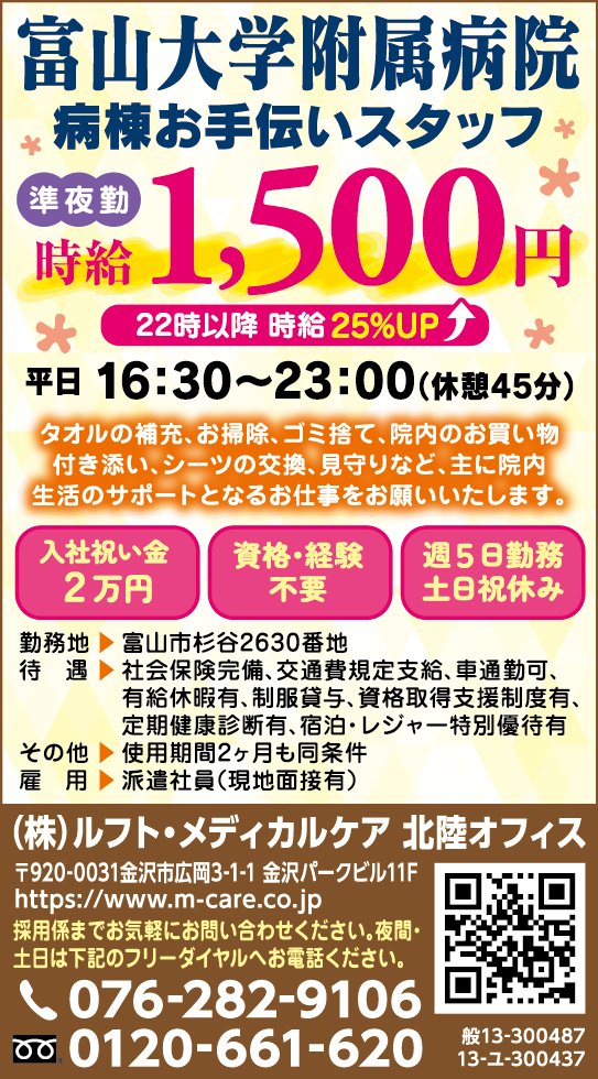 PR 【12月4日掲載】株式会社ルフト・メディカルケア北陸オフィス、中日本ハイウェイ・メンテナンス北陸株式会社【2025】 12月4日掲載開始分 2025年12月4日 05:00 人材派遣 求人企業のHP (076)282-9106 パート この求人は電話でのみ応募を受け付けております 076-421-0208 担当/中塩(なかしお) この機能は会員限定です。 お気に入りの記事を保存し、マイページで読むことができます。 ログイン 会員登録はこちら