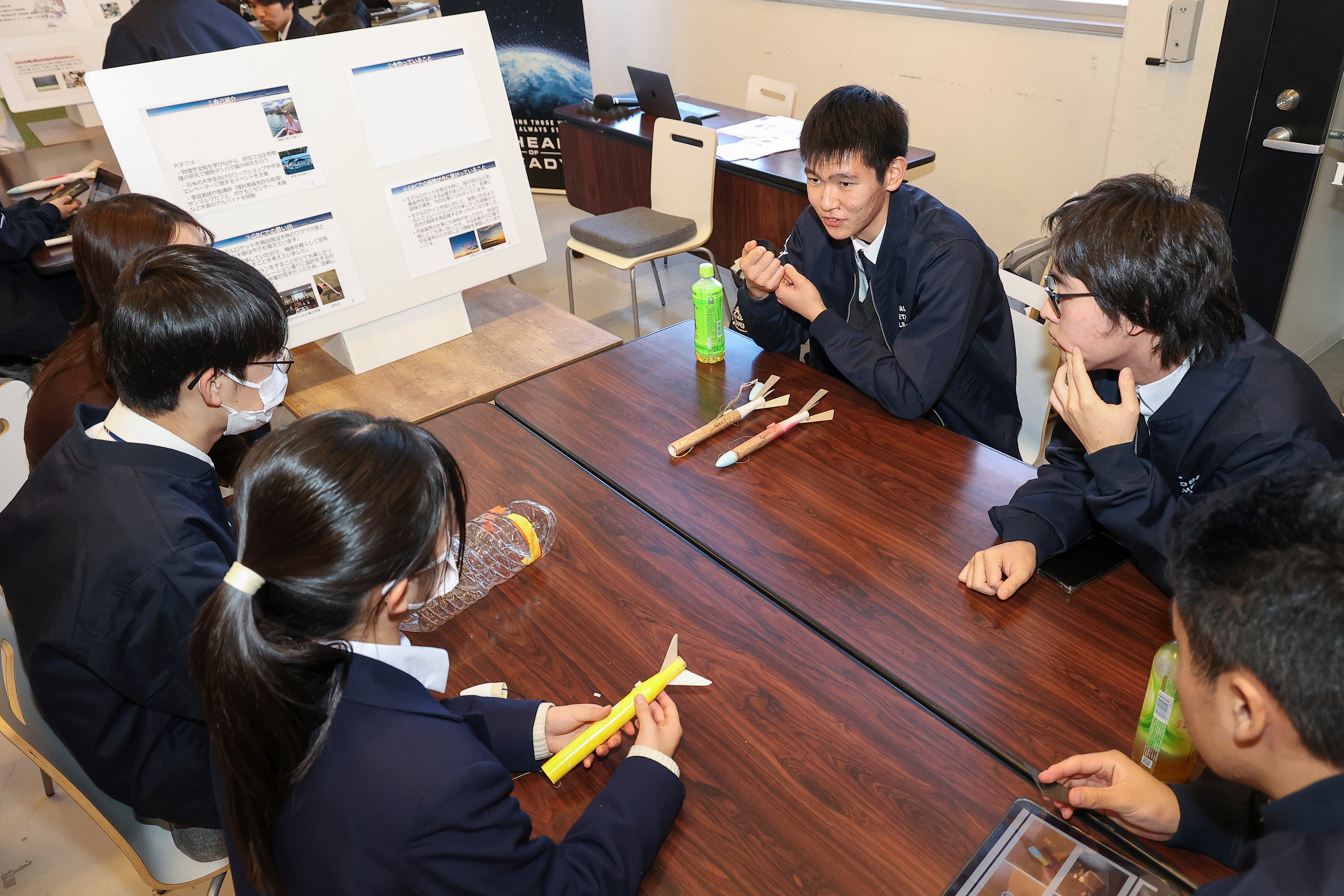 続くワークショップでは、日本大学理工学部航空宇宙工学科高橋賢一教授と民間の宇宙開発系の企業で技術研究をされている六尾圭悟氏がゲストスピーカーとして「宇宙開発と輸送」と研究者としてのキャリアについて講演しました。「未来の宇宙開発を一歩進める!」とのテーマのもと、生徒がグループで「20年後の宇宙開発と私たちの生活」について課題と解決策を議論し、発表しました。生徒の中には、宇宙開発における環境問題を取り上げ、資源の再利用に関するアイディアを提案するなど、将来の宇宙開発を見据えた活発な議論を行いました。