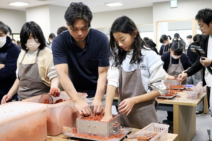 午前の部と午後の部があり、午前の部には約30人が参加。高岡銅器の職人でつくる「高岡青銅会」のメンバーらが講師を務めた。