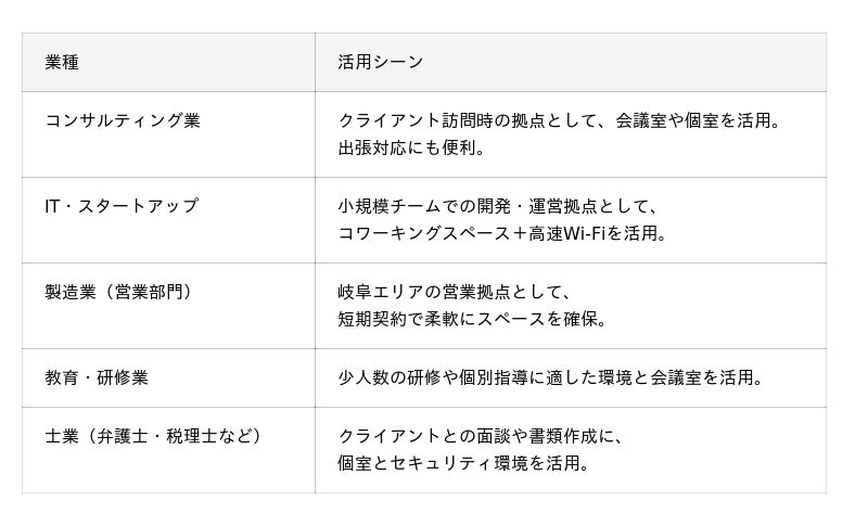 オープンオフィス岐阜駅前は、以下のような利用者に特におすすめです。