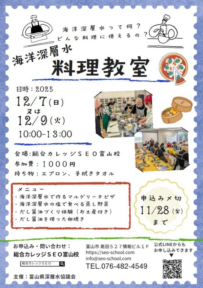 今年も『海洋深層水 料理教室』に家族で参加しました。