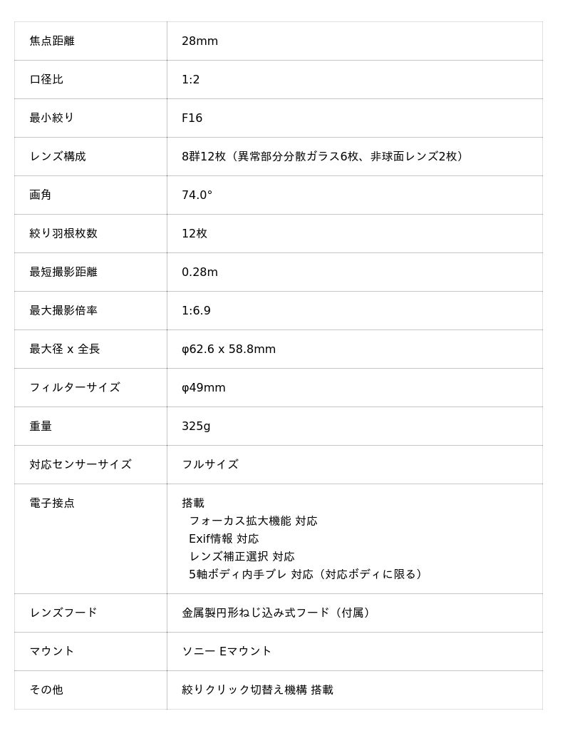 APO-LANTHAR 28mm F2 Aspherical E-mount 製品外観