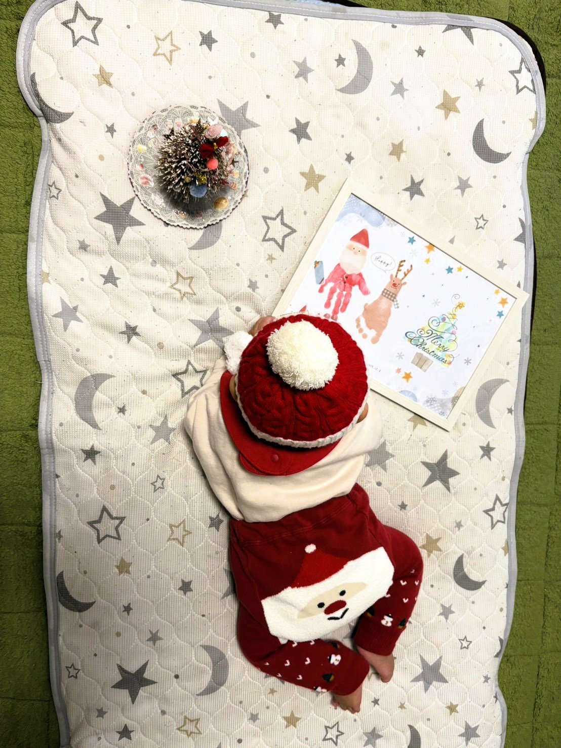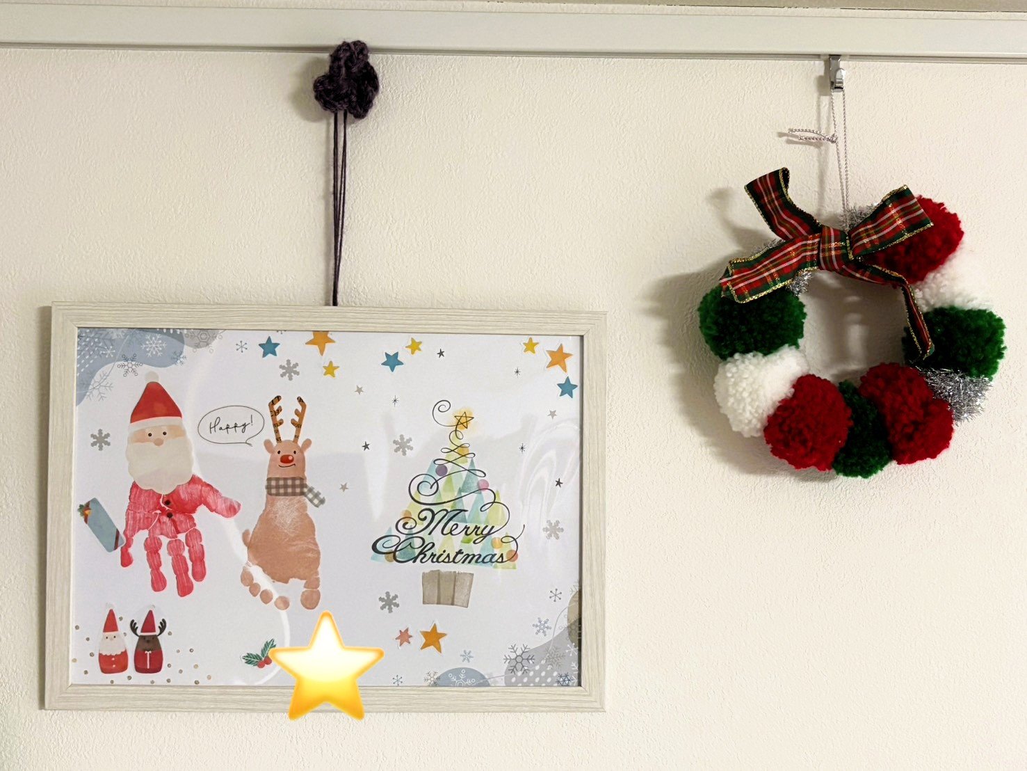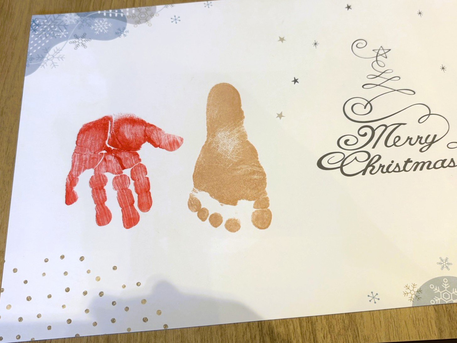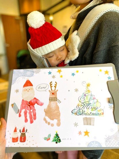 手形はサンタクロース、足型はトナカイになりました。他にも手形ツリーや足型雪だるまも選べましたよ。