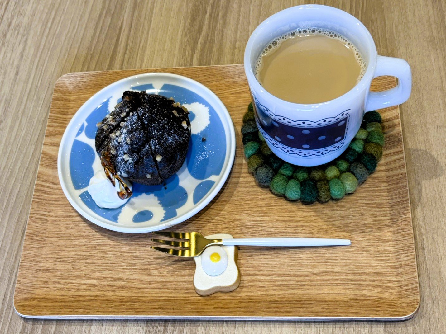 今回はチョコマフィンとカフェオレをいただきました。