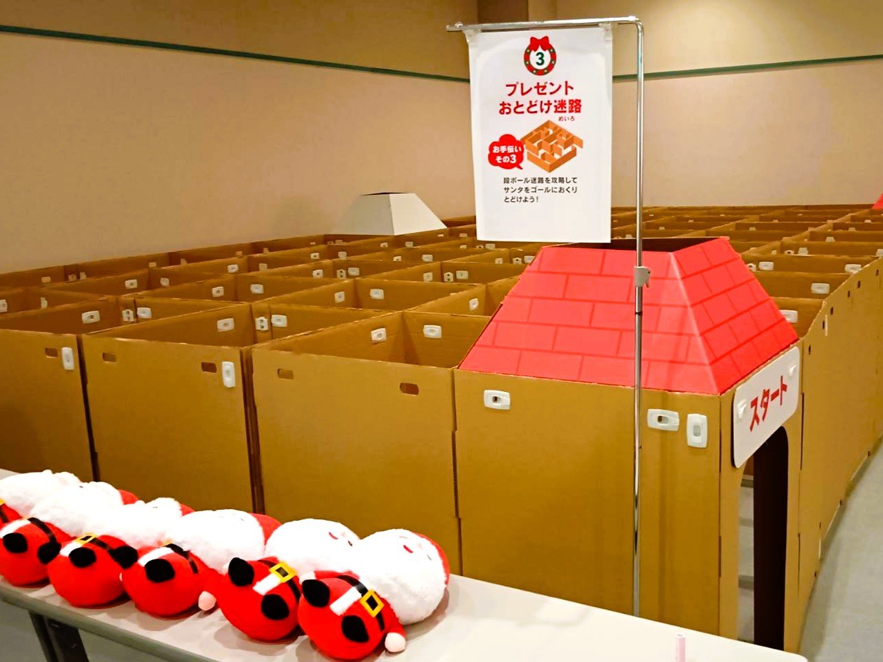 クリスマスツリーの飾りを作って飾ったり、段ボール迷路に挑戦したりしました。
