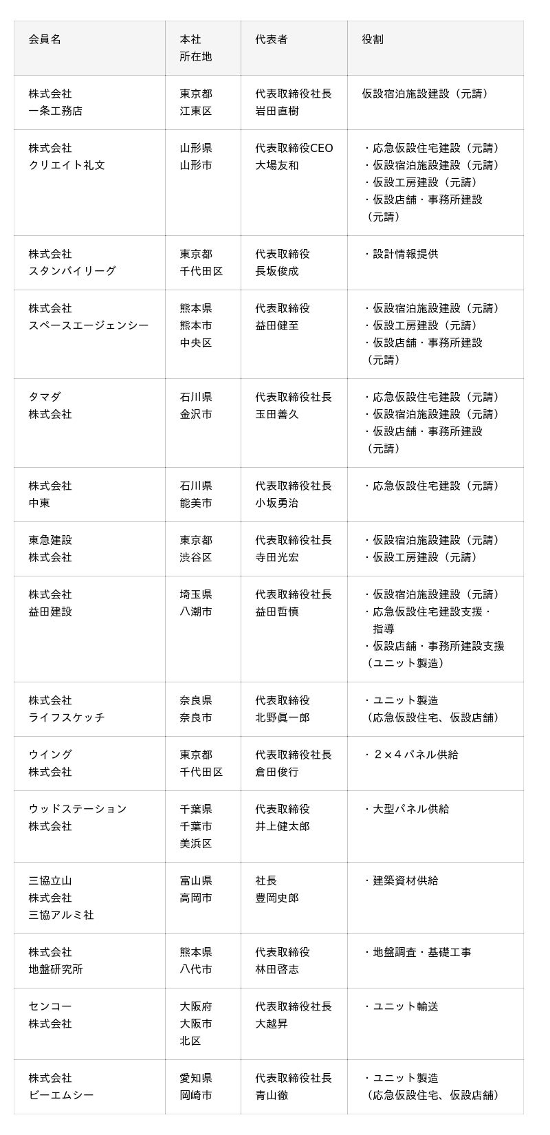 能登半島地震の被災地対応にご協力いただいた会員企業の皆様に、感謝申し上げます。(敬称略)