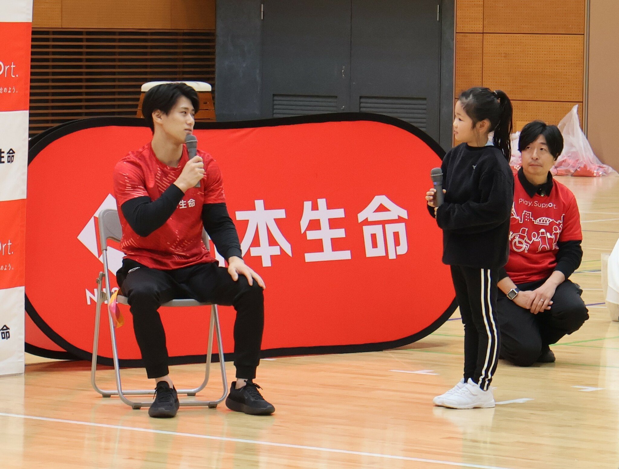 橋本選手が所属する保険大手、日本生命が全国的に取り組む体操教室で、この日は同社富山支社が主催した。