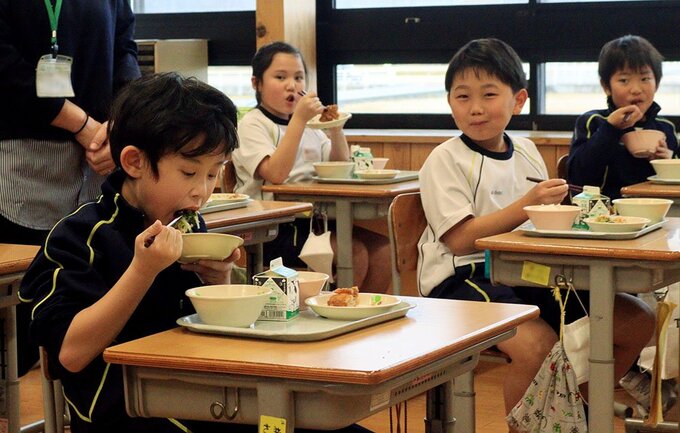 同校では市地場産食材活用推進協議会員や生産者らが訪れて試食した。3年生の教室では児童が「めっちゃおいしい」と声を上げながら頬張っていた。