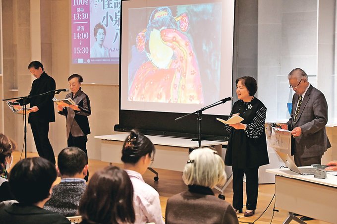 NHK連続テレビ小説「ばけばけ」で注目が集まる小泉八雲(ラフカディオ・ハーン)に関するセミナーが14日、富山市西町のTOYAMAキラリで開かれた。八雲の研究を行う富山八雲会(中尾哲雄会長)が紙芝居や朗読などを披露し、著作や功績を伝えた。